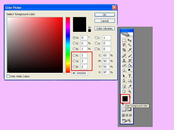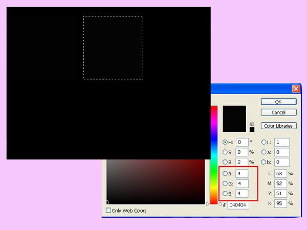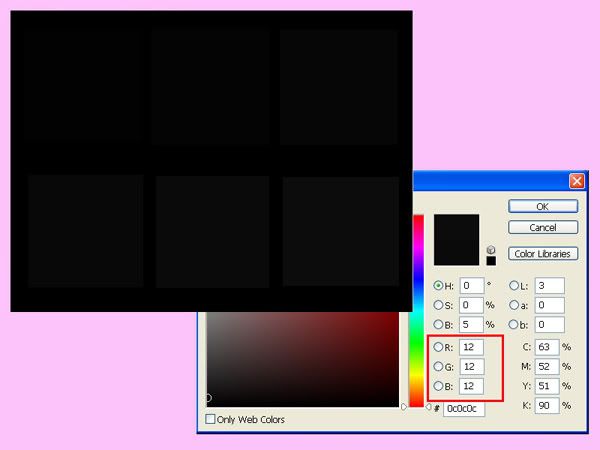 在Photoshop顯示出圖表,以螢幕的「Brightness」調整功能,將第2~3的黑色塊(RGB為4~6)調整到勉強看得見為止。