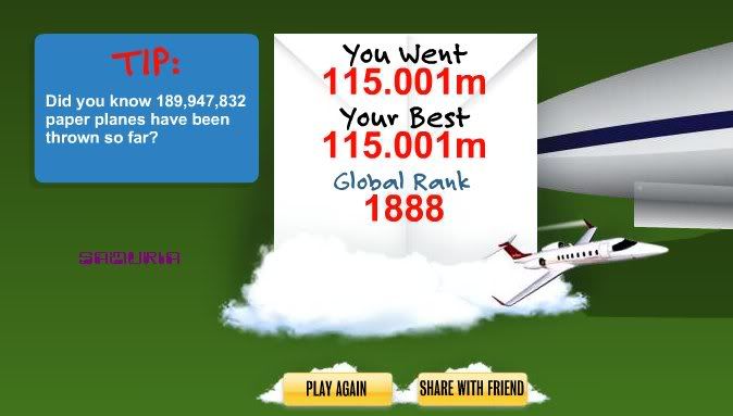 P/S:我发现如果飞出窗口的速度快的话,会飞得很远...大家可以尝试从高处丢下来,飞机在一定的速度就会起头,然后冲出窗口,快得多  |