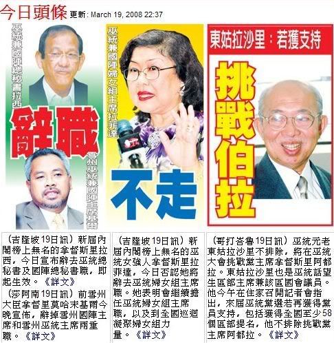 “目前,是所有人同心鞏固黨的時刻,巫女青或婦女組黨員問題不應存在,因為所有人都在同一屋簷下,所有內閣成員都攜手合作,絕非如反對黨般,只從本身政黨利益為出發點。”