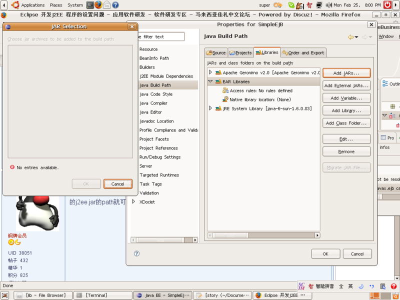 看来EAR是个空的User Library,并没有加入JDK的位置。