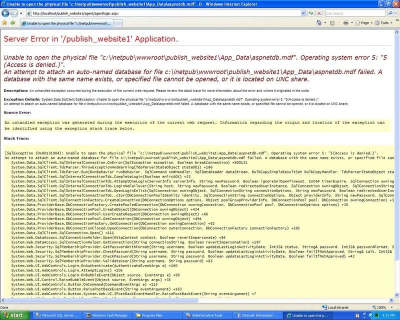 你试试把你数据库(Database)的Permission开给ASP.NET,因为你面对的问题是Access Denied |