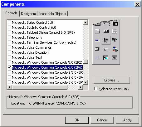 对,你必须开Components然后加Microsoft Common Control(不知Version几了)