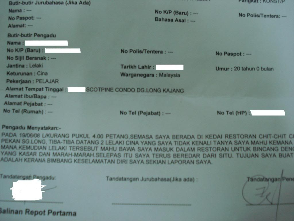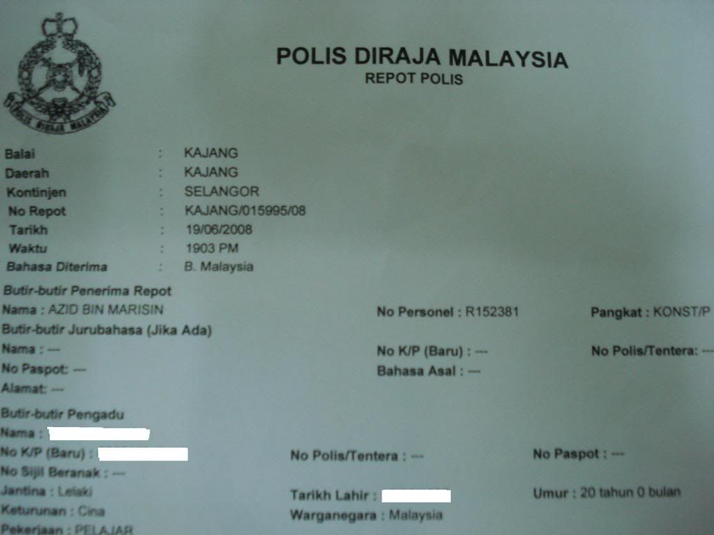 过后就跑去报警.下面是report纸,如果你不信是真的话。。。