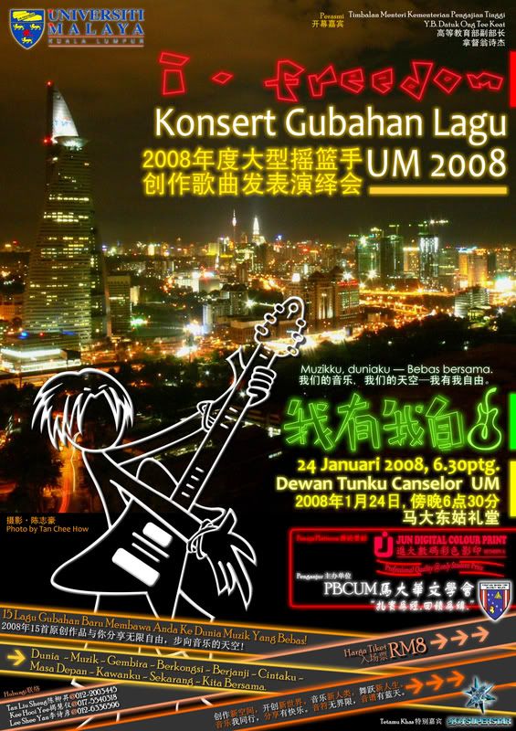 (三)四海一家,邀请各大专到校园及组团到各大专表演,促进各大专创作歌曲的交流与了解,形成一股庞大的创作风气。 |