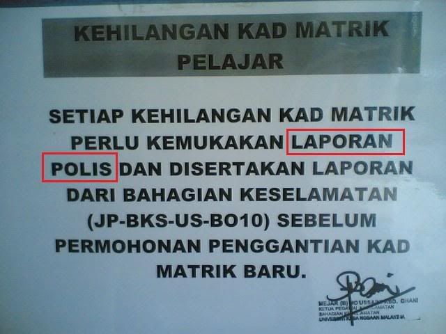 最近才知道!。。原来UKM KAD Matrik不见要去报警!!!