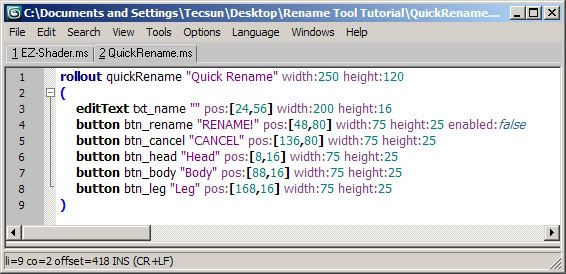 2) 接下来我们完成这个script。- rollout quickRename "Quick Rename" width:250 height:120