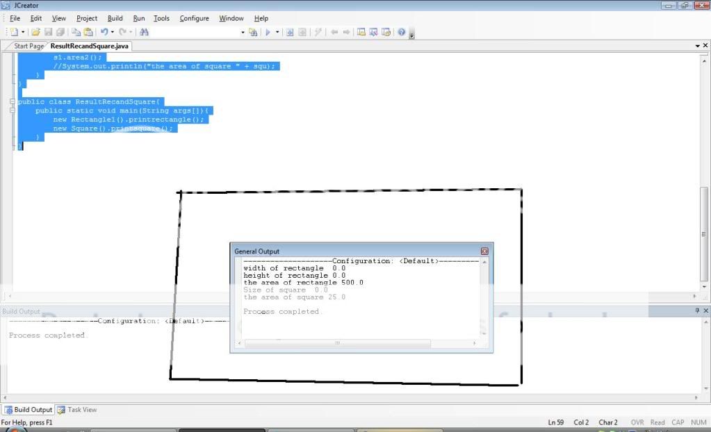 正方形是等邊,所以只要丟一個參數給它就好。繼承的基本觀念就是先找出各物件相同的屬性做成super class,剩下要customize的部分再另外寫一個class去繼承super class。