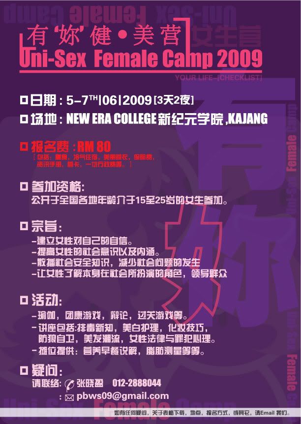 联络 营长 张晓盈(012-2888044) ,chang ( 012-6715233) , kenny (012 2247285)