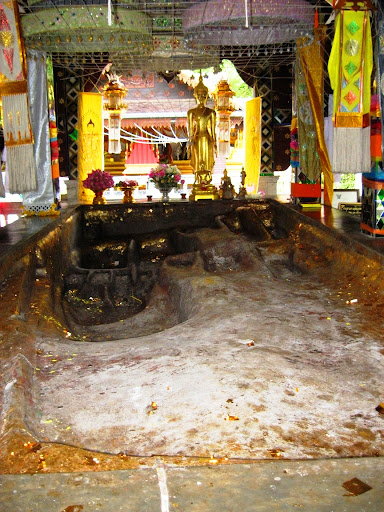 我在离曼谷市,应该是ayuttaya的一间庙也看到佛祖脚印,但没这个酱大。。。他们说是真的。。  |