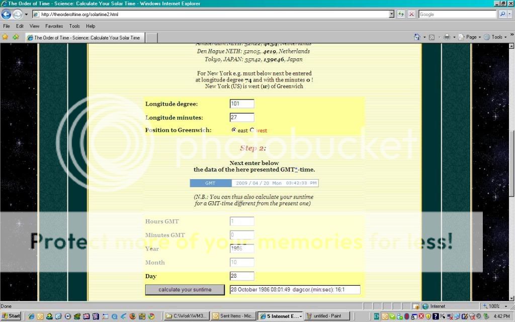 我看你是填错了。因为那网站是以英国时间来看,应该填写为1986年10月28日1:00就行了。如果还不明白,可以pm我 |