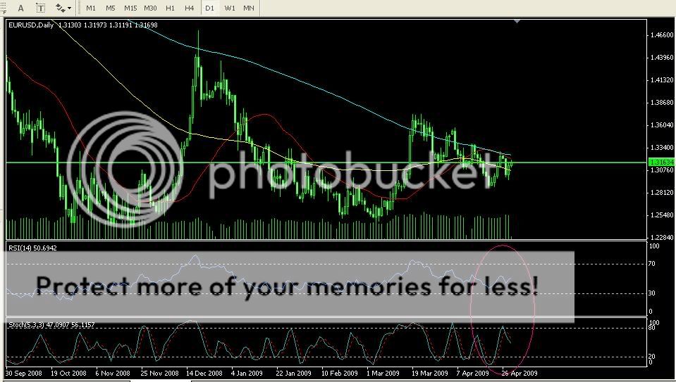 从日图来看,rsi和stoch一个下一个不上不下的,我没把握判断大方向,所以都不会考虑去做单,风险太大了,上下都有可能。 |