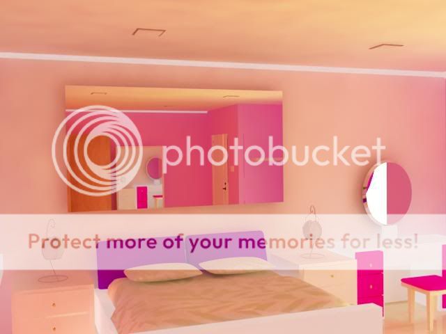 你的另一边墙壁的粉红色太过强了,GI affect到了你的白色墙壁 ... (是白色么?)