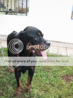 一只被人抛弃, 在水沟生活了一个星期的 Rotty , 被人救起后送去SPCA . 可是Rottweiler这种狗狗在里面是不受欢迎的, 迟早都 会被安乐死。 她在水沟里都能生存了, 证明她根本就不想这么快就去见阎王。 所以偷偷的把她带了出来。 现在寄放在朋友家里。 检查了,没问题只是太瘦了,吃回肥点就很美了。 有兴趣领养的朋友可以联络我。 会安排结扎才送出去