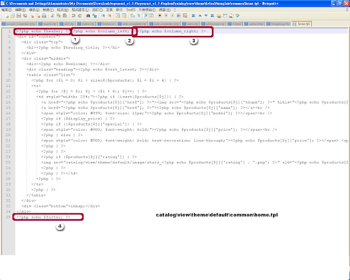 catalog/view/theme/default/common/home.tpl 是他的整個樣板主架構