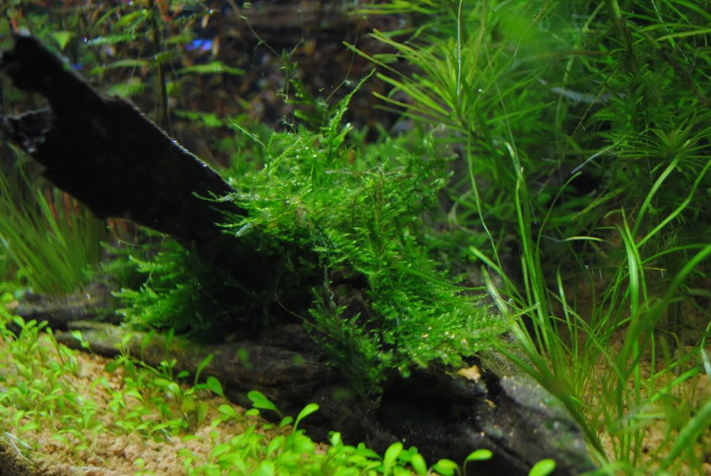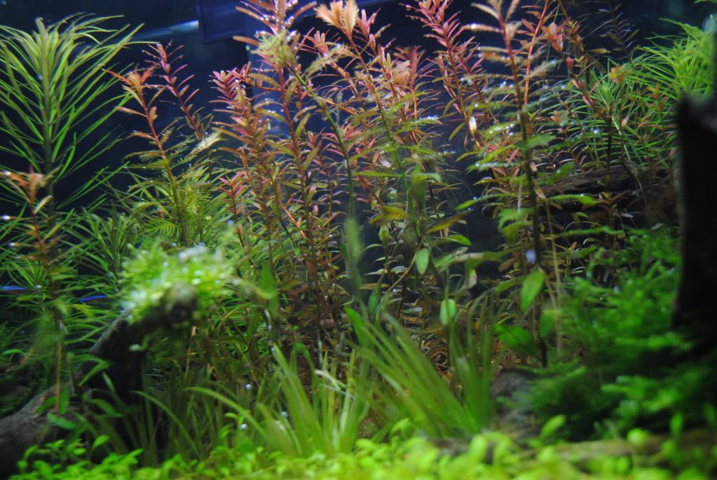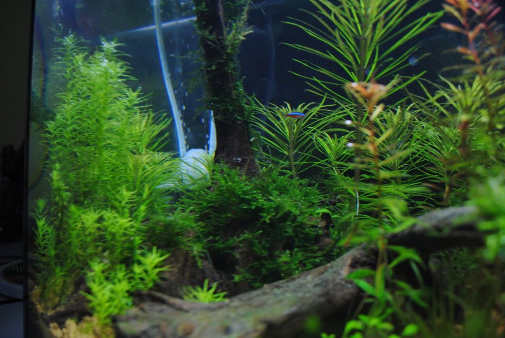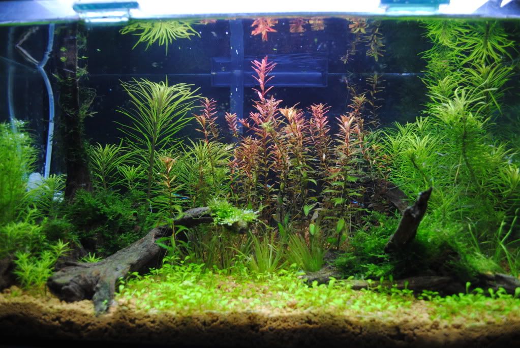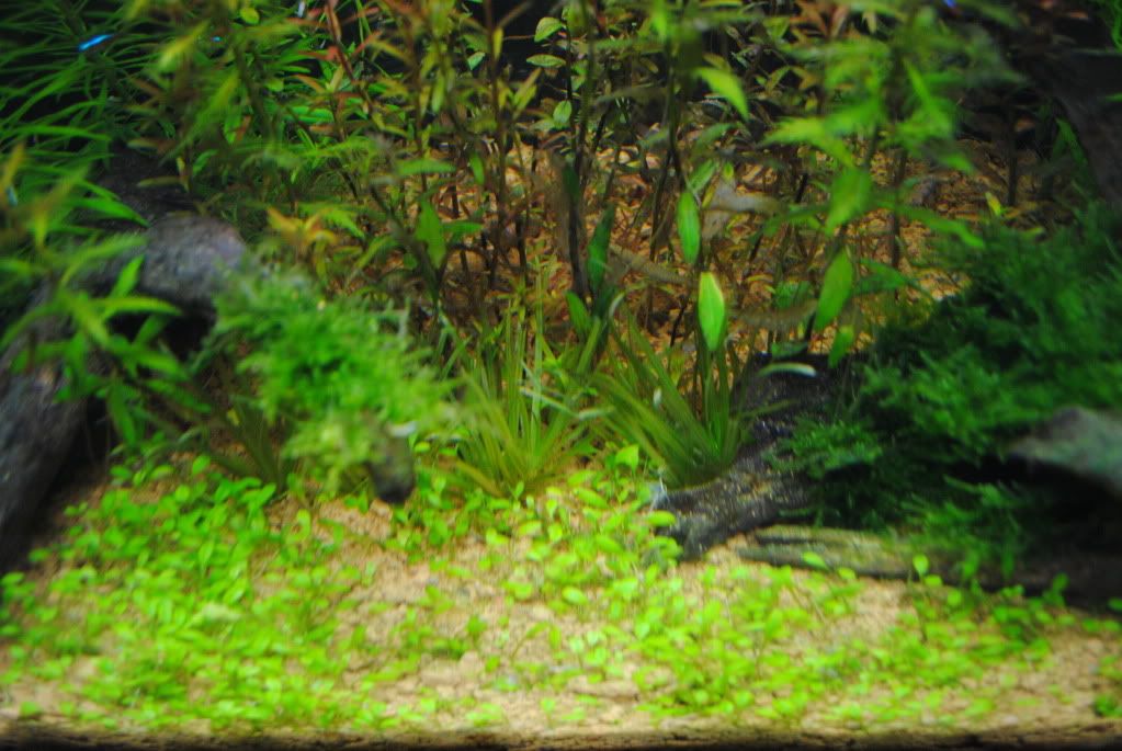 下次反缸时尝试种些小叶的背景草,整个感觉都会不一样的,2尺小缸不适合种百叶这些“大草”。 |