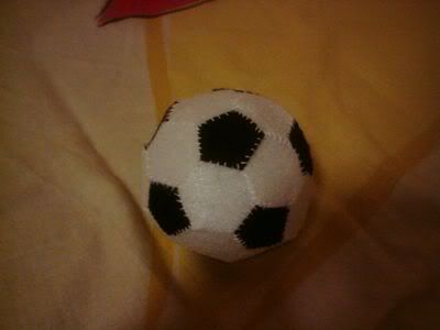 这个小足球用了半天的时间才做好。棉花不够多,看起来 ...