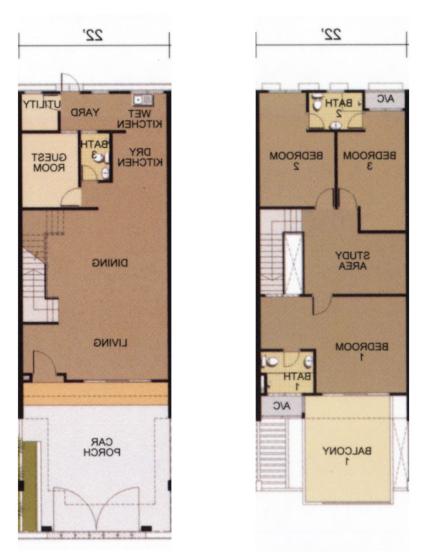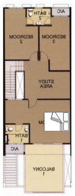 由于你的房屋面向西南(参考见左下图),因此从INTERMEDIATE UNIT的FLOOR PLAN看,发现有两点值得注意: