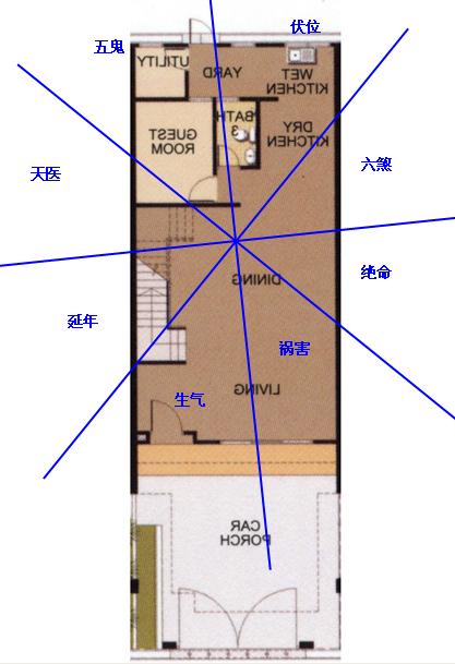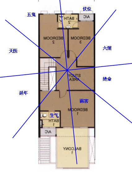 按八宅的理论,每间家只要用后面就好了,因为每个八宅后面就是伏位