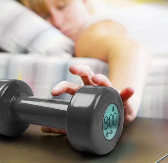 今天你拥有了哑铃闹钟就不同了,每天闹钟响时,你必须举哑铃达三十次,它才会停止响。
