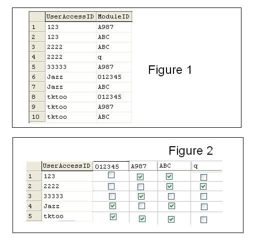 一个table里面有2个column, 我想要把ModuleID的DATA变成column header