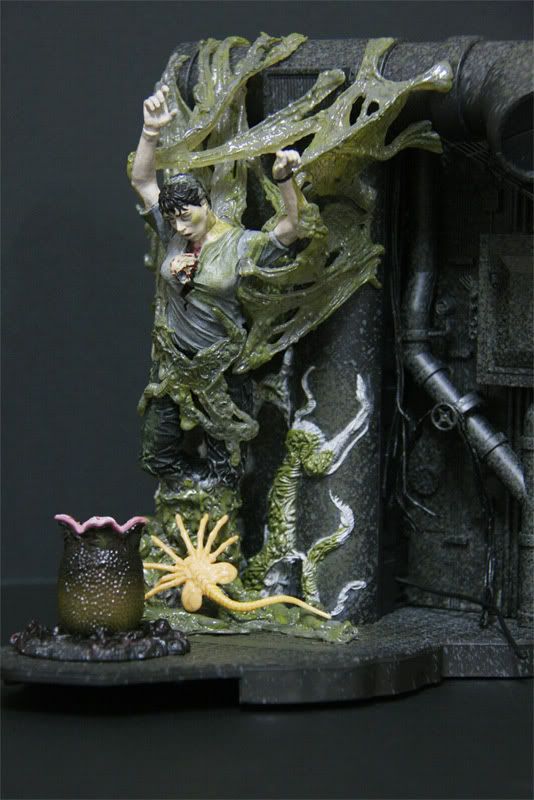 只要异形卵开始孵化,其产生的抱脸虫就有了两个目的:活命和寻找宿主. 抱脸虫个头小,行动更迅速,而且腿部力量惊人.一旦找到了宿主,它就会扑到其脸上,搬开其嘴巴,把异形胚胎从其喉咙注入体内.这时, 抱脸虫会供给宿主氧气保存其生命.在胚胎注入完毕后, 抱脸虫的使命已经完成,它们将自动死亡.
