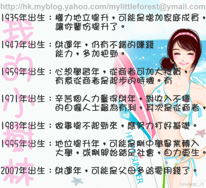 十月:(己亥)8/11/11—6/12/11 本月运势突然下滑,工作上有突如其来的事情发生,记得要注意好好控制自己的情绪和脾气,并小心处理问题。财运不佳,对于做生意的朋友来说,要停止一些投机活动,也要小心谨慎处理财务,更不要随意挥霍,以免出现经济问题。爱情运不佳,双方会因意见不和而发生争执,爱侣间要学会相互体谅,不如换个方向去思考,或许能够更加了解对方。尽量避免不必要的应酬,多用点时间休息,给身体更好的照顾。