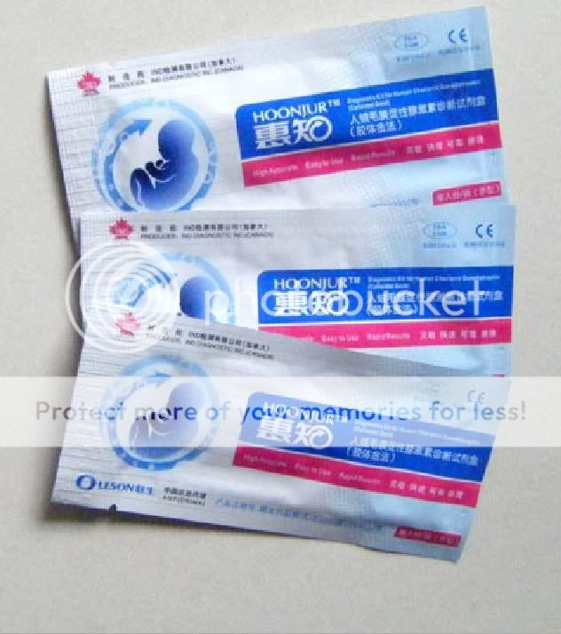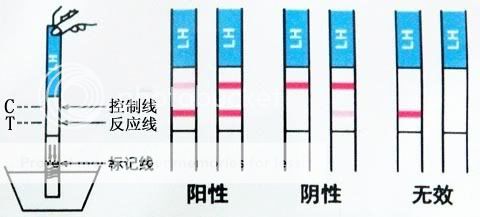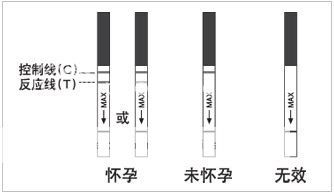 阳性:在试纸条白色显示区上端和下端同时呈现两条红色线(控制线和反应线),提示怀孕。 阴性:只在试纸条白色显示区上端呈现一条红色线(控制线)而显示区下端无色线,提示未怀孕。 无效:5 分钟在试纸条白色显示区上端无控制线出现,提示试验失败或试纸无效。
