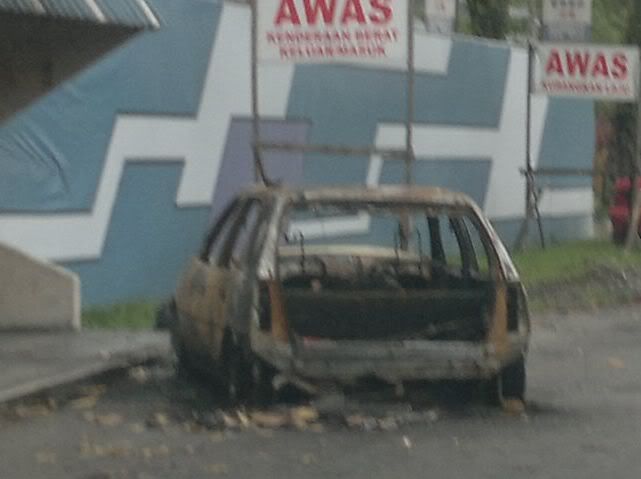 刚刚看到很多人在看,很大的烟。。好像有辆车烧起来。。。是吗? |