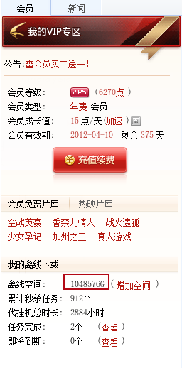 迅雷-我有100万G离线空间