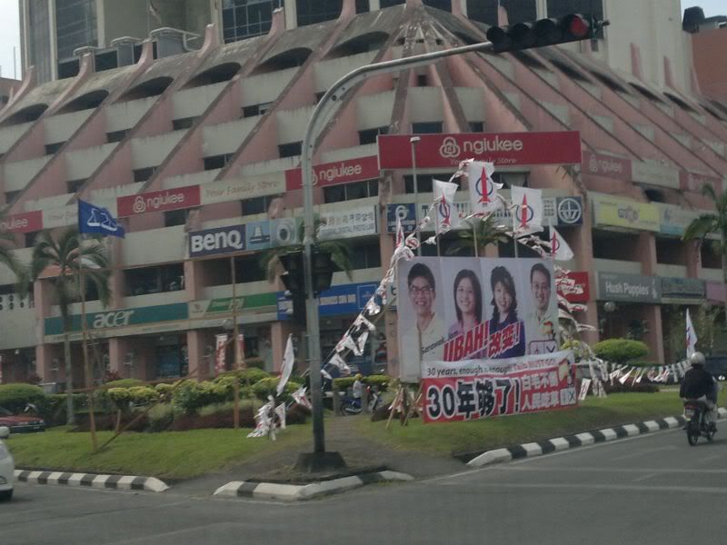 中午吃飯, 回來在PADUNGAN MD前的貓那邊看到PADUNGAN獨立人士黃先生的競選海報, 他還真快, 早上才用大紅花標誌, 海報已經出來, 是否很早就準備好以獨立人士來攪局... |