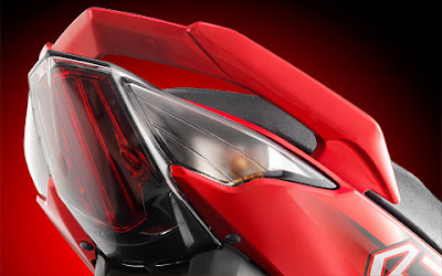 5th: 0.963 | | Cylinder tech | DiASil (die-cast Silicon Aluminium alloy) | DiASil (die-cast Silicon Aluminium alloy) | | Carburetor | 3C1 (Electronic Fuel Injection) motomalaya.net | Mikuni BS25 motomalaya.net | | Comp. Ratio | 10.4:1 motomalaya.net | 10.9:1motomalaya.net | | Fuel tank capacity | 12.0 l motomalaya.net | 4.0 l motomalaya.net | | Engine oil capacity | 1.15 l | 1.0 l motomalaya.net | | Front Suspension | Telescopic | Telescopic | | Rear Suspension | Monocross motomalaya.net | Monocross motomalaya.net | | Top speed (not official) | 140 km/h (not official)