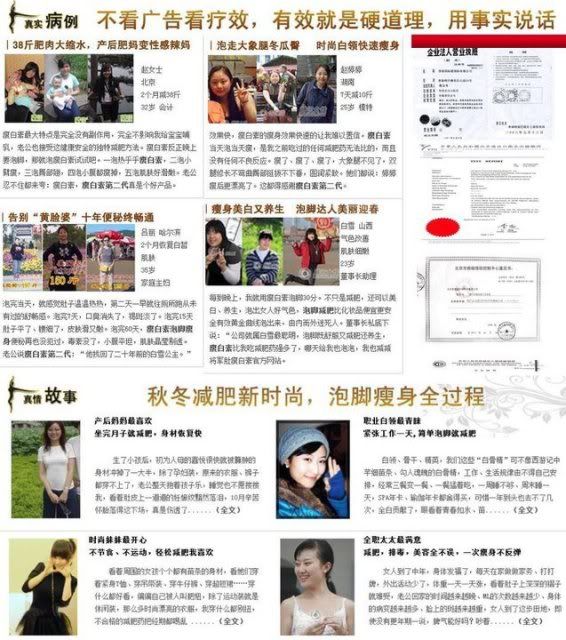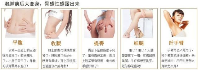 瘦白素泡脚瘦身,排脂同时,还能将脸上,身体中的黑色素一同排出,吸附、溶解、瘦身、美肤、四步一体,同步完成!只需30天,就减掉8-20斤的神奇效果,你还犹豫什么!赶紧用瘦白素泡脚瘦身吧!早一天泡,早一天瘦,早一天白!2011年,瘦身美白大家一起来! |