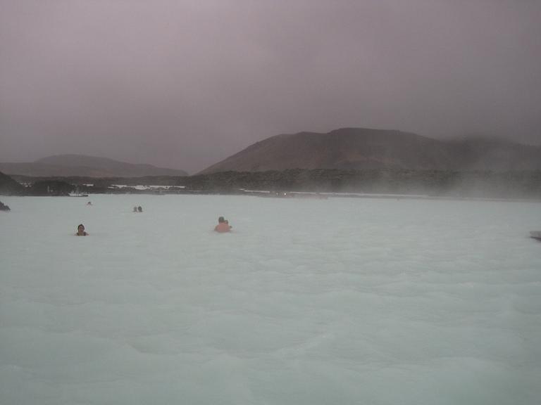 蓝湖:是一个人工湖,是世界最大的露天温泉,呈乳蓝色,周围就是黑色的火山岩。