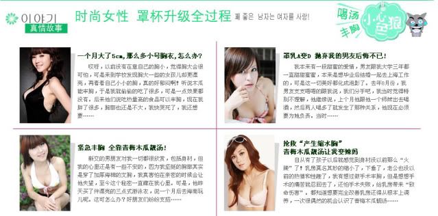 青 梅木瓜汤:源自高丽王朝著名的宫廷药膳---玉女补乳汤。韩国庆熙大学的专家们从东南亚蕃木瓜、亚热带高山青梅、深海鱼骨胶原等30多种天然植物中提取出 乳腺营养素,直接给乳腺细胞补充营养,让干瘪的细胞变鼓胀起来,从根本上让乳房丰满、坚挺,全面解决乳房扁小、下垂、松弛、外扩的情况。 |