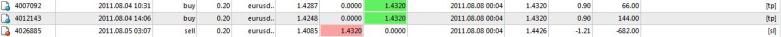 eurusd: sell @ 1.42581, take profit: 1.42314, stop loss: 1.42873 (system time: 8 July 2011 - 10.37)