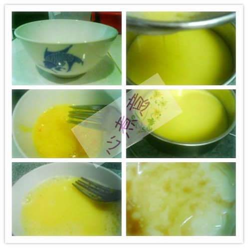 3。用筛子把蛋的泡泡沥掉。有时候会偷懒skip掉这个部分。当然泡泡一定不能有很多。通常懒惰不用筛子,那么我会蒸之前的半个钟头准备好,然后放在一边,让泡泡自己走掉