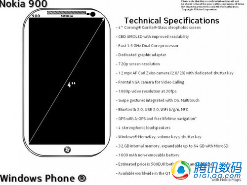1.5GHz雙核 WP系統諾基亞900功能曝光