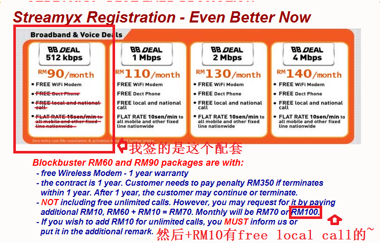 以前有那个 配套没有free modem得~ modem 好像可以不用还得阿 |