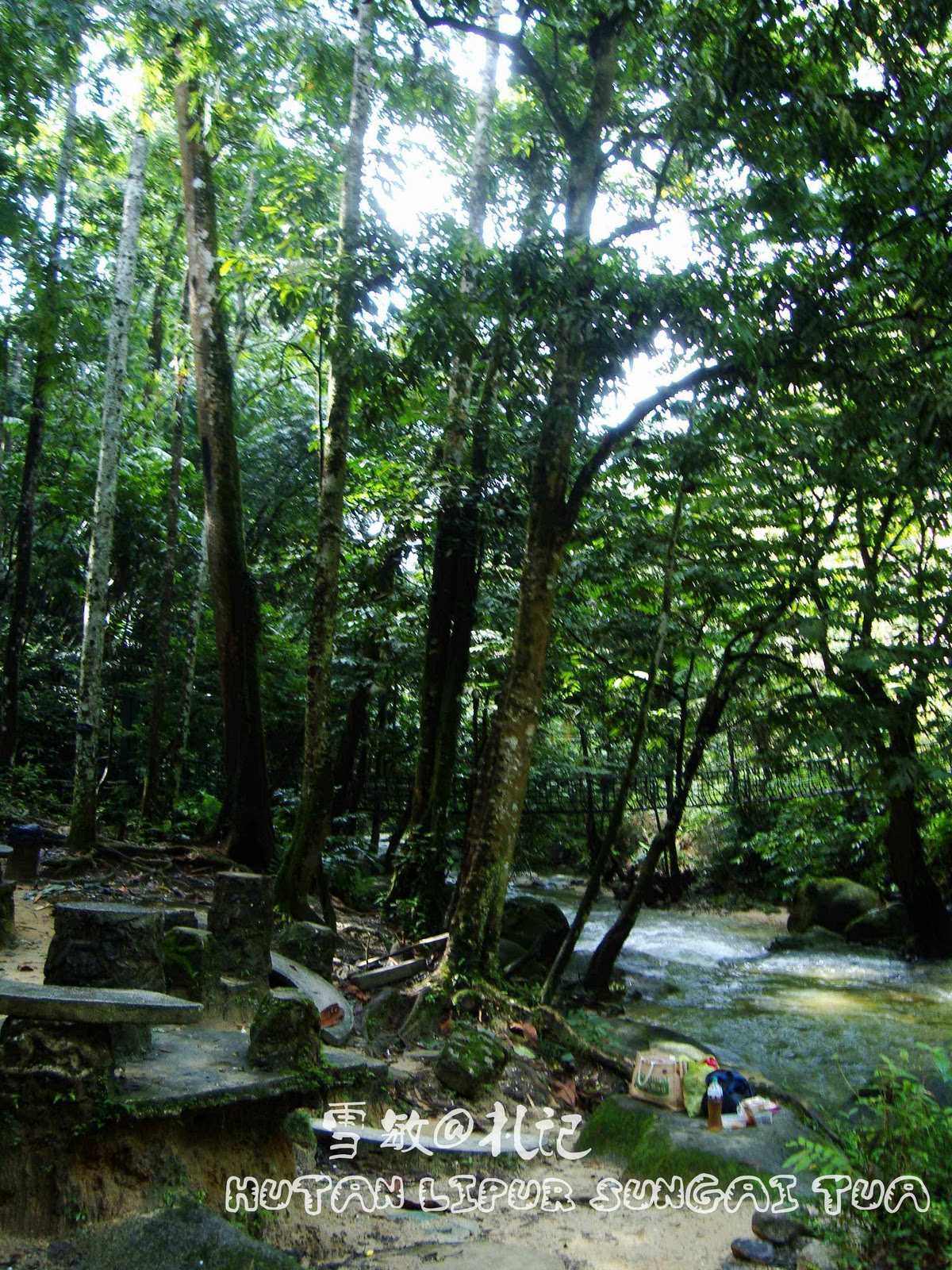 我们就上路啦,驾车到Batu Caves,转入Jalan Sungai Tua,一路直上。首先你会看到一个很大的水坝,再直走窜过水坝后,走走走就会看到写着Hutan Lipur Sungai Tua的入口,其实这里只有河流而已,并没有瀑布,属于下流~~有很多起帐篷的点