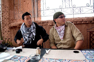 經不起和那小販拉扯﹐我們也就坐下來吃。由於大家都是素食者﹐本來對食物的要求並沒有很高﹐有得吃就可以了~ 但是﹐其實當地的素食簡單得來卻很有味道﹐燒烤茄子﹐咖哩CousCous, BerBer Omelette等都讓我們吃得津津有味~