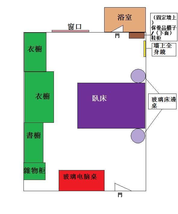 床不适合放在门边。。 同时你的床对窗也不大好。。 不懂这样摆设适合你吗?。 internetguy 发表于 24-11-2011 10:29 AM