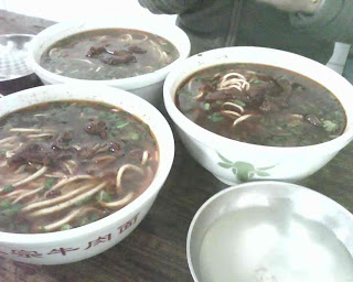蘭州牛肉面rmb$8 一碗 雖然已經跟店員說一點辣也不要, 但不知為何,最後每一碗都有滿滿的辣油:@ |