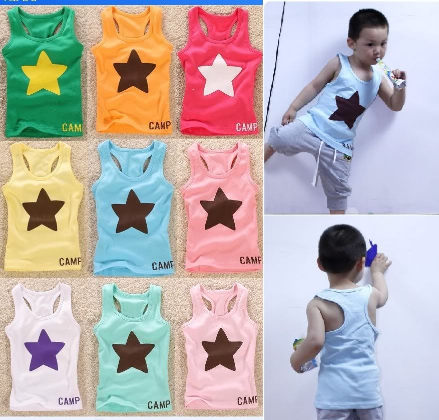 热卖韩版五星工字糖果色全棉无袖背心 RM11.90 RM8.90 [现货: 90码-天蓝色]