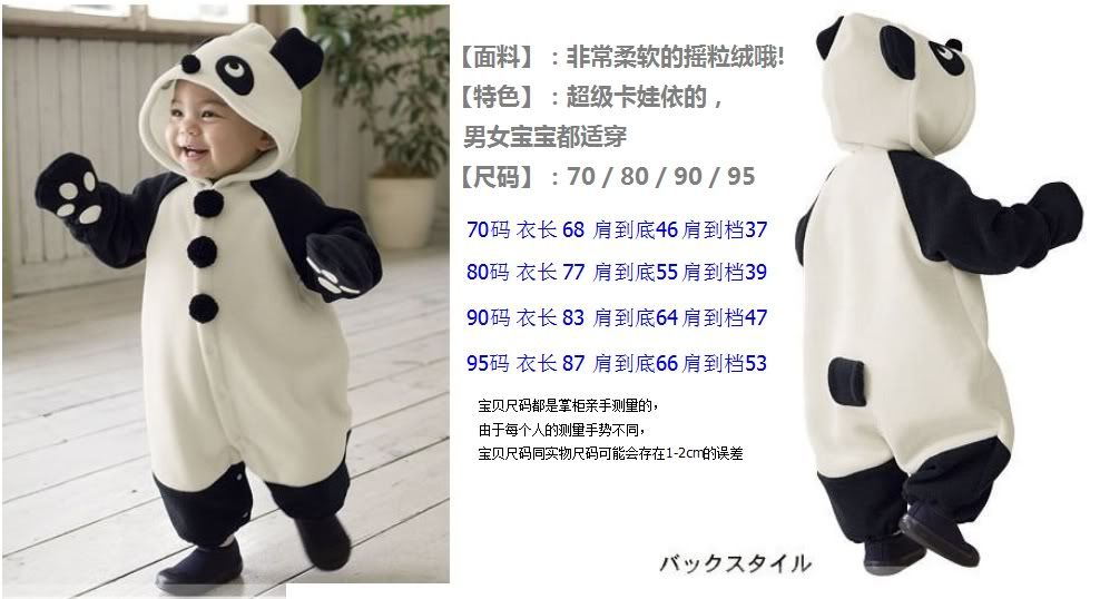 连体的包脚设计,上身很舒服,里面有全绒的内衬,很保暖也很舒适!超级可爱的小动物造型衣,不用多说啦,人人都爱啊!