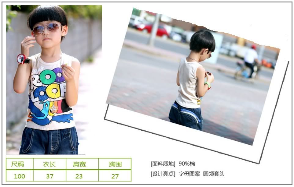 (1) 日韩新款男童背心+长裤2件套装 (90码)