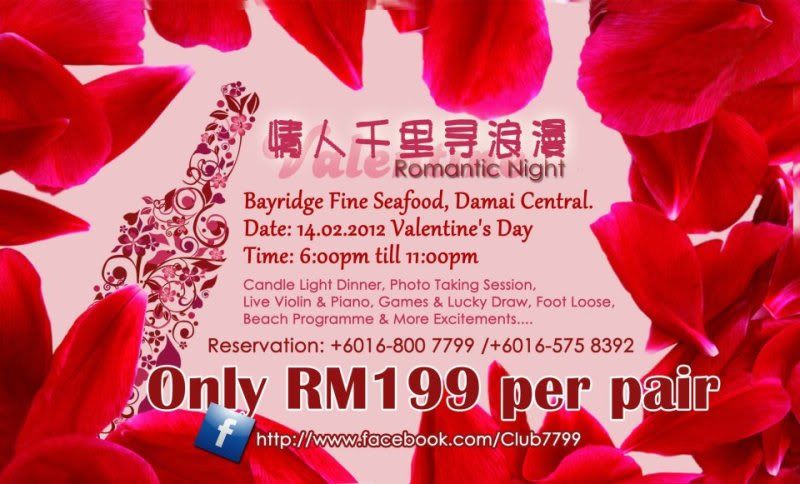 2个人一座的不是10个一座的啦 这个是情人节派对,不是喝喜酒派对 听说当天晚上会有人当场求婚。哈哈哈 ... yin2007 发表于 9-2-2012 12:51 PM