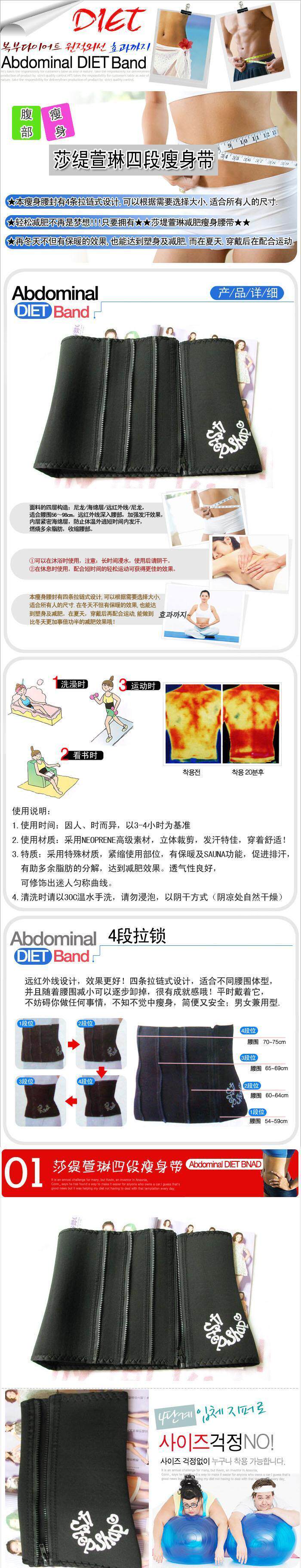 所以多了一段远红外线设计,效果更好!四条拉链式设计,适合不同腰围体型,并且随着腰围减小可以逐步卸掉,很有成就感哦!平时戴着它,不妨碍你做任何事情,不知不觉中瘦身,简便又安全!