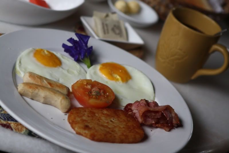 这一类型的度假屋在Bali, ChiangMai 都蛮多的,两排高脚木屋,很有本地的特色。高脚屋下列着木制躺椅,对者小小的泳池,周围摆了不少乡间小玩意。整个度假屋只有十二间双人房,而且不招待十二岁以下的孩童,所以是个相当适合周末小住,又远离喧闹的城市,静一静的地方。有个小酒吧,酒吧楼上是视听室,有个60寸电视,还有几个书架,收着游客留下来的书。经理是个老外,其他的工作人员包括厨师都是土著,都相当热情,有礼貌。据经理说,顾客90%是外国人,都是住上三五天,他们再安排出海,trekking,再参观周围的景点等。