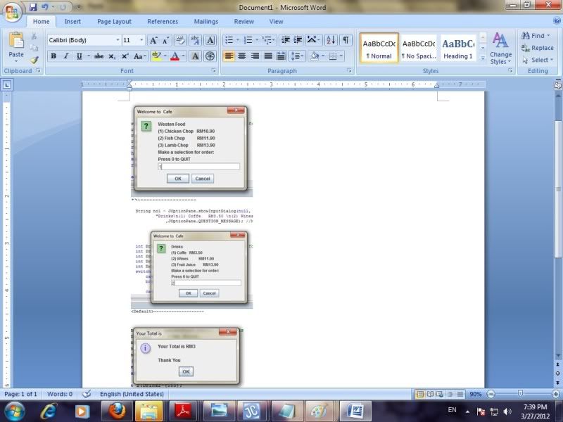 "Your Total is RM" +(food_price+drink_price)+"\n\nThank You "