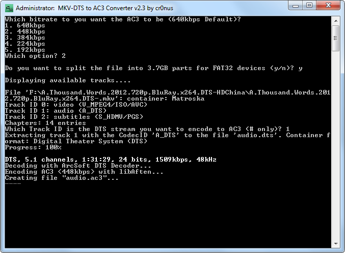其实网上已经有人写好了单一的软件, 简单的就可以把 MKV file 里的 DTS 改成 AC3。